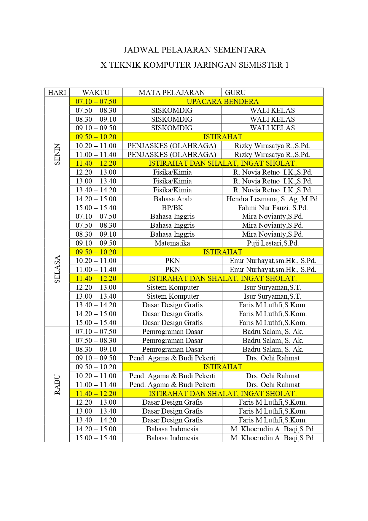 JADWAL PELAJARAN X TKJ Ditulis olehAzis Effendy26 Juli 2022Diposkan padaJadwal Pelajaran Berikut Jadwal Pelajaran Sementara Untuk X TKJ Jadwal Pelajaran SementaraUnduh Bagikan ini: Bagikan ke X(Membuka di jendela yang baru) X Bagikan pada Facebook(Membuka di jendela yang baru) Facebook Suka Memuat... Terkait